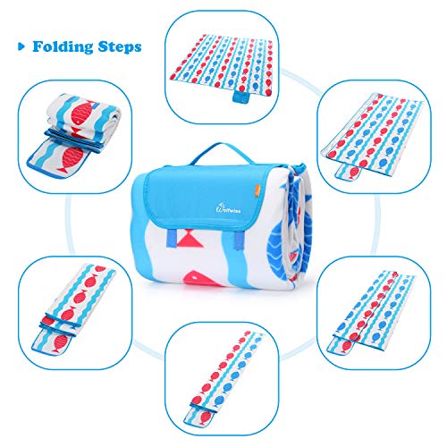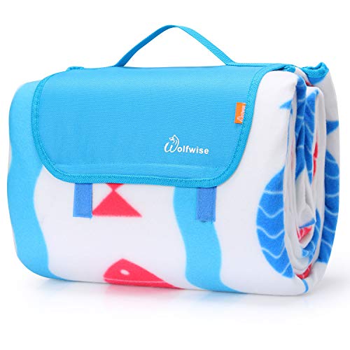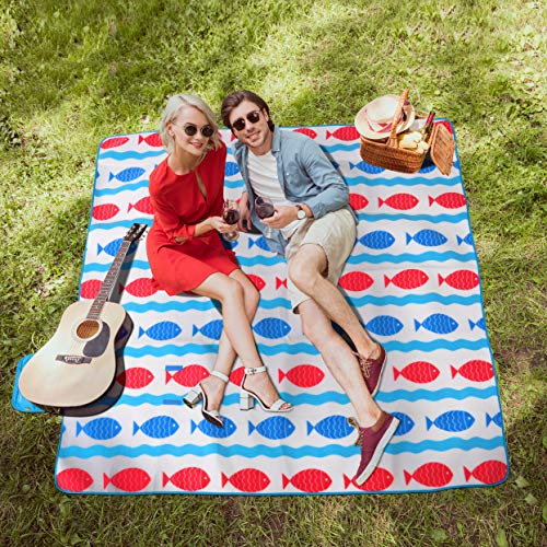 WolfWise 200 x 200cm XXL Coperta da Picnic Extra Large Tappetino Campeggio Giardino Spiaggia con Supporto Impermeabile Anti-Sabbia, Pesce Rosso Blu