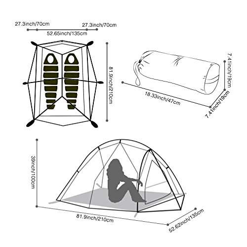 ULTRA-PORTABLE: La tenda pesa solo 3.96 libbre con una dimensione piegata (18.5 "x7.5" x7.5 ") per il trasporto senza sforzo nello zaino.