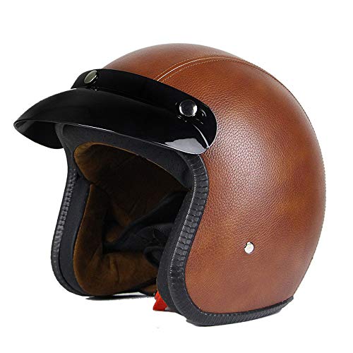 Woljay Pelle Casco da Moto casco aperto Caschi Scooter Marrone (Medium)