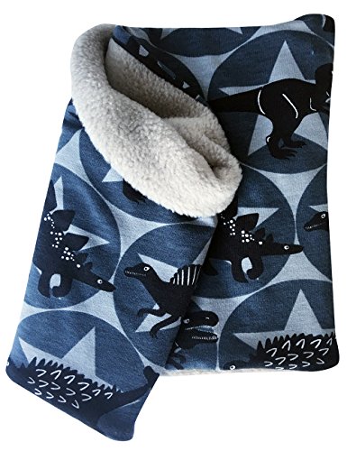 Wollhuhn 20170115, Caldo scaldacollo, sciarpa tubolare, con bel motivo a dinosauri e stelle, per ragazzi e ragazze, interno in pile