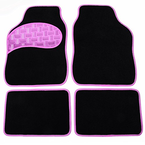 WOLTU 7247+AM7151 Set Coprisedili Auto 5 Posti Seat Cover Protezioni Universali per Macchina con Motivo Farfalle Tessuto Poliestere con Tappetini per Atuo Nero/Roso