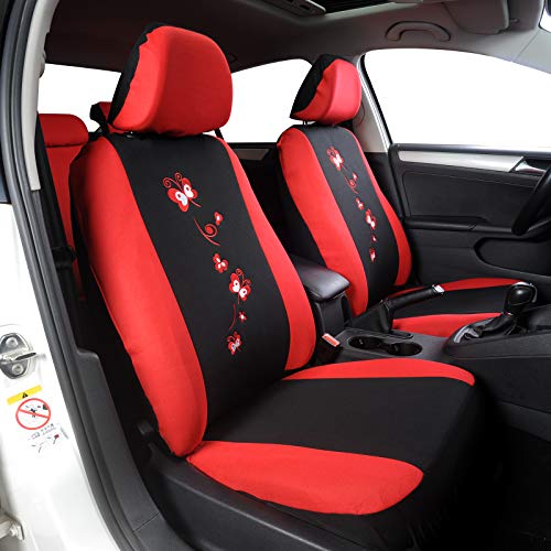 WOLTU AS7250 Set Completo di Coprisedili per Auto Macchina Seat Cover Universali Protezione per Sedile di Poliestere con Ricamo Farfalle Nero+Rosso