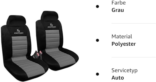 WOLTU AS7255-2 Set Coprisedili Anteriori Auto 2 Posti Seat Cover Protezioni Universali per Macchina Tessuto Poliestere Nero/Grigio