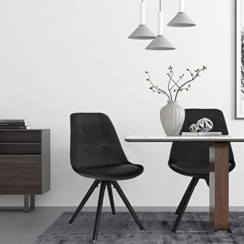 WOLTU BH196sz-2 Sedie da Cucina in Velluto Seduta Imbottita con Schienale Senza Braccioli Nero 2 Pezzi