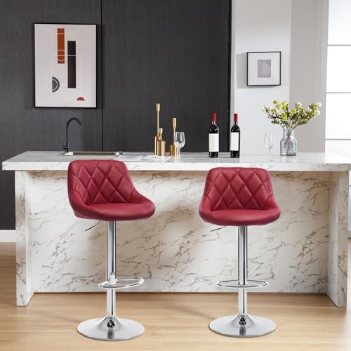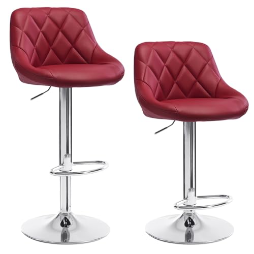 WOLTU BH23bd-2 Coppia Sgabelli da Bar Moderni Girevoli Sedia Cucina Alta con Schienale Quadrato Senza Braccioli Altezza Regolabile in Ecopelle Bordeaux
