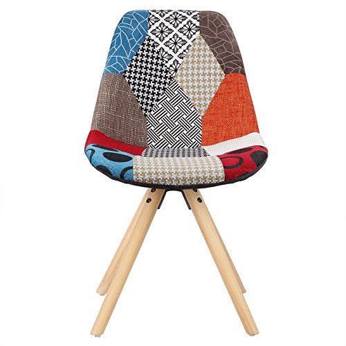 WOLTU BH52mf-4 Sedie da Pranzo Sala Cucina Ristorante Seggiola Sgabello con Schienale Stoffa Lino Gambe di Faggio Moderno 4 Pezzi Patchwork