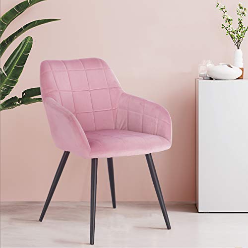 WOLTU BH93rs-1 Poltroncina Camera da Letto in Velluto Rosa, Sedia Sala da Pranzo con Braccioli Gambe in Metallo