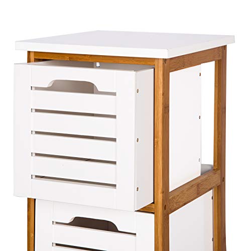 WOLTU BZS01 Mensole Doccia Scaffale D'angolo Bagno Portaoggetti Portasciugamani Comodino Organizzatore Mobiletto con 3 Cassetti bambù e Legno