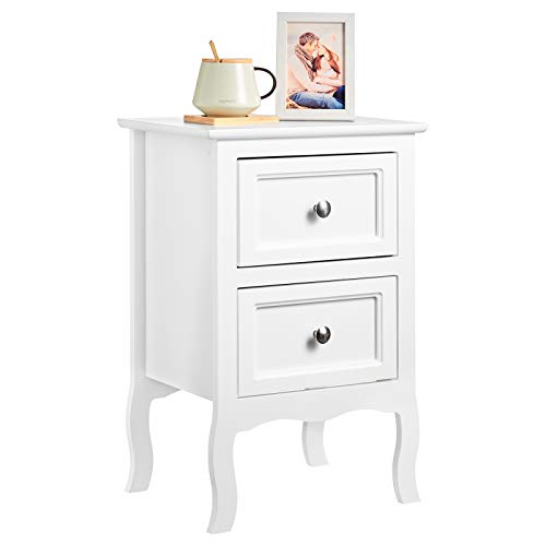 WOLTU Set di 2 Comodino Shabby Chic Comodino Bianco con Due Cassetti per Camera da Letto Comodino da Notte in MDF 40x30x60cm TS119ws