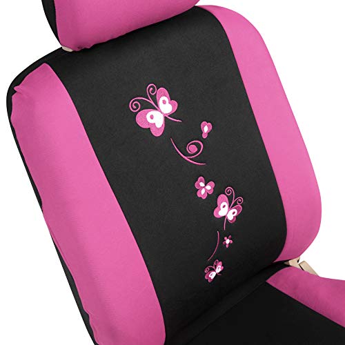 WOLTU 7252+7160 Set Completo di Coprisedili Auto 5 Posti Seat Cover Protezioni Universali per Macchina con Motivo Ricamato Tessuto Poliestere Nero/Roso