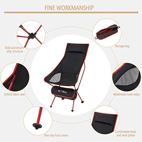 WOLTU CPS8133rt Sedia Pieghevole da Campeggio Pesce Impermeabile Portatile Carico 140KG Tessuto Oxford, Nero+Rosso