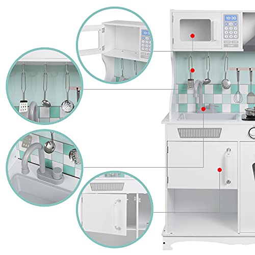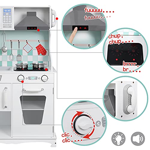 WOLTU Cucina Giocattolo per Bambini in Legno Mini Cucina Giocattolo con Utensili Telefono e Pentole Cucinetta per Bimbi con Suoni e Luci Regalo per Bambini 3 Anni, Bianco KKE005