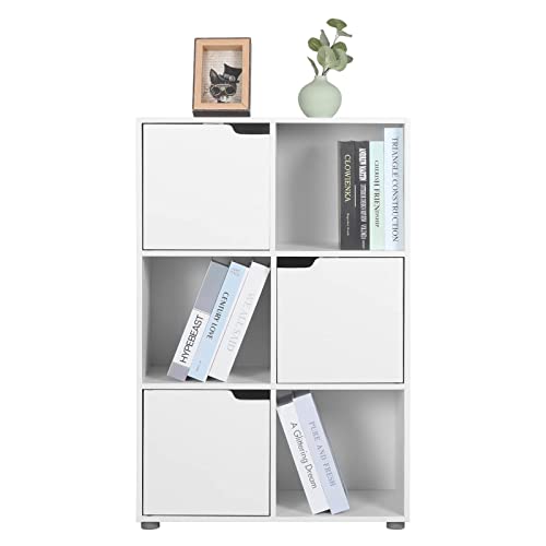 WOLTU Libreria Armadio a 6 Cubi con Ante Mensola di Legno Portadocumenti Scaffale per Casa e Ufficio Porta Libri CD SK001ws