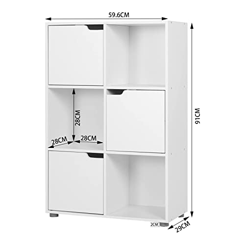 SALVASPAZIO: con 6 scomparti su 3 ripiani, lo scaffale bianco WOLTU occupa poco spazio ma offre più vani per riporre libri, CD, giocattoli, riviste, documenti o foto, mantenendo la tua casa ordinata e ben organizzata. Dimensioni totali: 59,6x29x91cm (LxPxH), dimensioni ogni scomparto: 28x28x28cm (LxPxH)