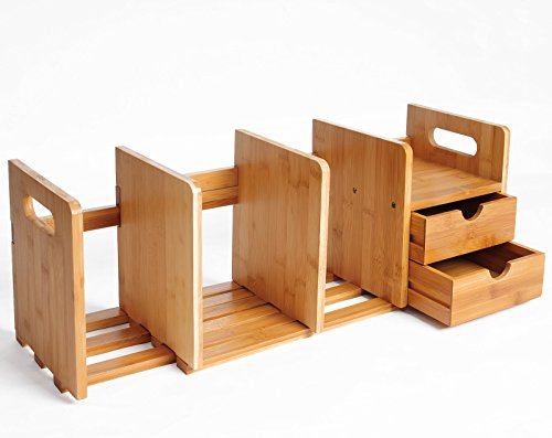 WOLTU Libreria Piccola sul Tavolo per Studenti Mensola con Cassetti Scaffale Organizer da Scrivania Ufficio in bambù RG9258br