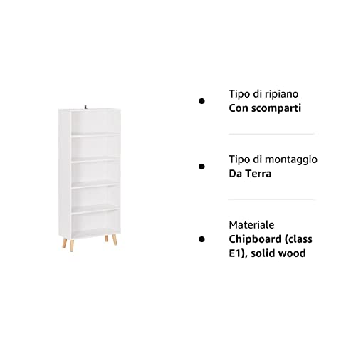SCOMPARTI A GIORNO: questa libreria moderna da 60x24x144cm è composta da 5 scomparti a giorno (ogni scomparto è alto 24,5cm e può reggere 15kg). Potrai così sistemare libri, CD e altro in base alla categoria e trovarli più facilmente