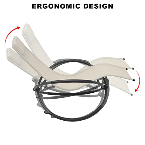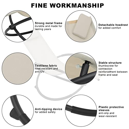 WOLTU LS002be Sedia Sdraio a Dondolo Relax Poltrona Swing Traspirante da Balcone Campeggio Lettino con Braccioli e Poggiatesta Beige