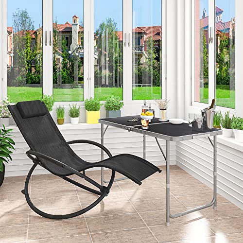 WOLTU LS002sz Sedia Sdraio a Dondolo Relax Poltrona Swing Traspirante da Balcone Campeggio Lettino con Braccioli e Poggiatesta Nero