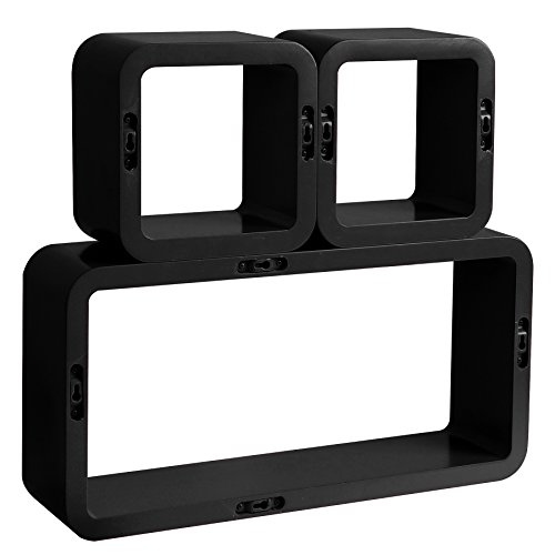 WOLTU Mensole da Muro Mensola a Cubo Scaffale Parete Legno MDF Moderno 3 Pezzi Diametro Diverso Nero RG9211