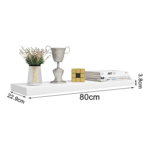 WOLTU Mensole da Muro Scaffale a Parete Decorazione per Cameretta Ufficio Libreria Porta CD/DVD Legno Bianco 80cm 3 Pezzi RG9318ws-3