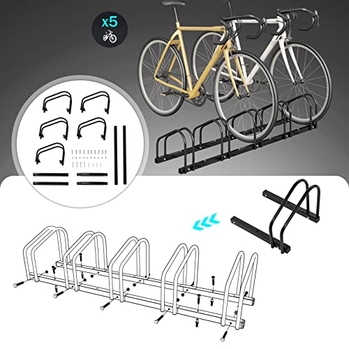 WOLTU Rastrelliera per Biciclette a 5 Posti Portabici Per Montaggio a Terra e a Muro Supporto Per Biciclette in Metallo Nero FZ1139sz03