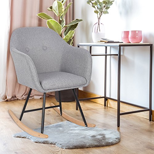 WOLTU Sedia a Dondolo Poltrona Relax con Schienale Braccioli in Tessuto di Lino Grigio Chiaro SKS04hgr