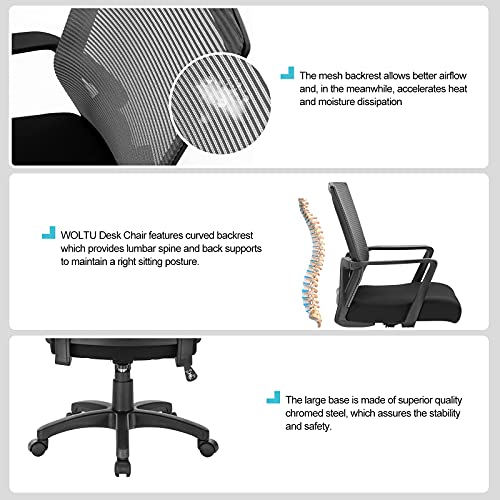WOLTU Sedia Ufficio Computer Poltrona da Scrivania Girevole con Rotelle in Rete Respirante Grigio BS88gr