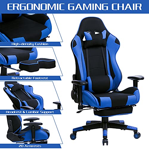 WOLTU Sedie Ufficio Sedia da Scrivania in Tessuto Poltrona Girevole con Schienale Poggiapiedi Cuscini Imbottiti Blu