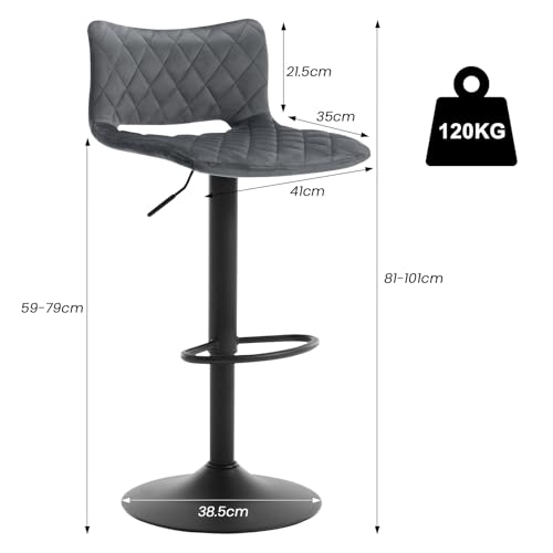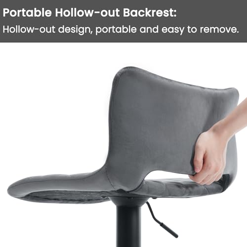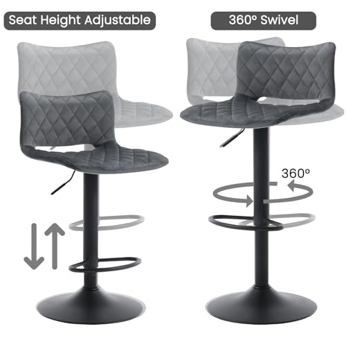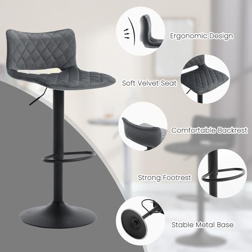 WOLTU Set di 2 Sgabelli da Bar, Sedie Alte da Bar Regolabili in Altezza, Sgabelli per Isola Cucina Girevoli, con Schienale e Poggiapiedi, Sgabelli Imbottiti in Velluto, Grigio Scuro, BH392dgr-2