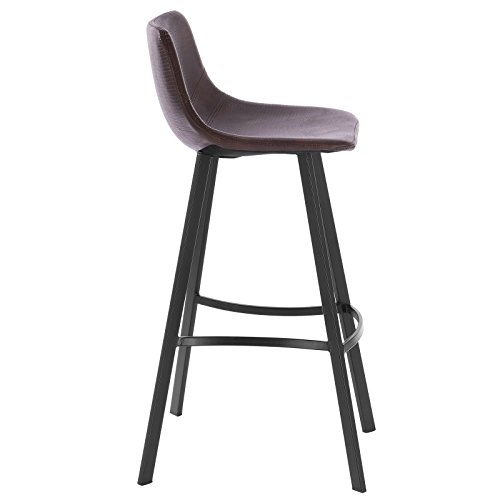 WOLTU Sgabelli da Bar Sgabello Vintage Industriale Sedia Cucina Alta con Schienale Ecopelle Metallo Marrone 4 Pezzi