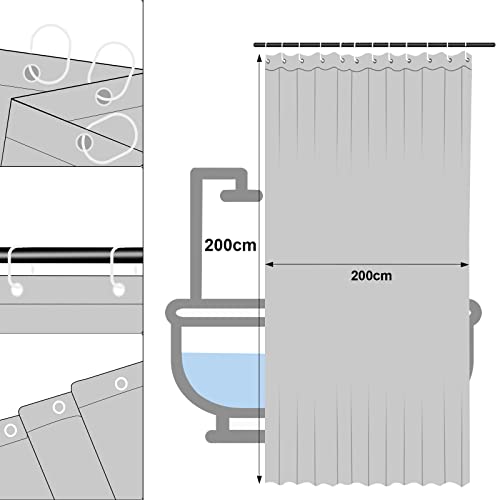 WOLTU Tenda da Doccia Antimuffa, Tenda Idrorepellente per Bagno, in 100% Poliestere, Occhielli in Alluminio e Ganci, Orlo Appesantito, per Appartamento, Casa 200x200 cm Grigio