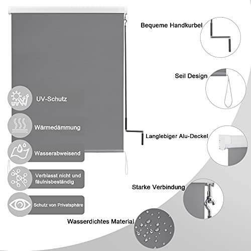 WOLTU Tenda da Sole a Rullo per Esterno con Manovella per Balcone Avvolgibile Oscurante Grigio scuro 100x140 cm