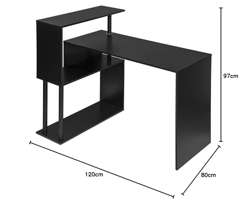 WOLTU TS108sz Scrivania Angolare con Mensola a 3 Ripiani per Ufficio Tavolo Porta Computer in Legno Nero