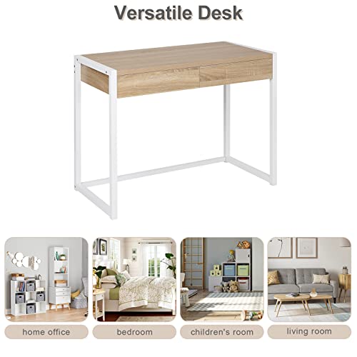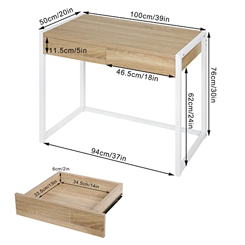 WOLTU TSG27hei Scrivania per Computer con 2 Cassetti Tavolo da Studio Ufficio in Metallo Legno