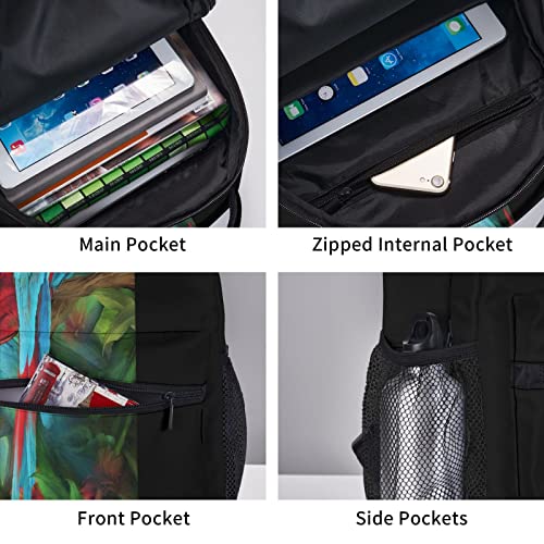 Due pappagalli colorati multi-sfaccettato stampato leggero zaino studente casual in tela di poliestere super forte e leggero ecologico e cerniera liscia. Il materiale è morbido e liscio e il materiale di alta qualità ti rende più comodo da trasportare. Adatto per studenti, zaini casual da donna e zaini da viaggio.