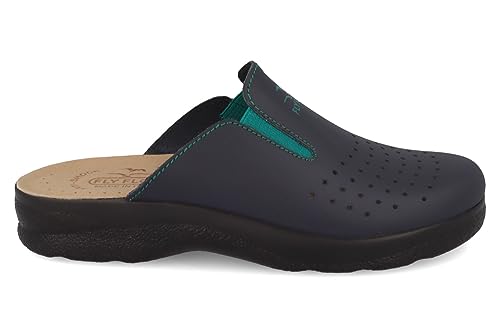 Fly Flot | Woman Professional, Zoccoli Sanitari Donna con Elastico Regolabile, Ciabatta con Tomaia in Pelle Forata, Sottopiede Imbottito in Pelle Antishock, Blu, 38