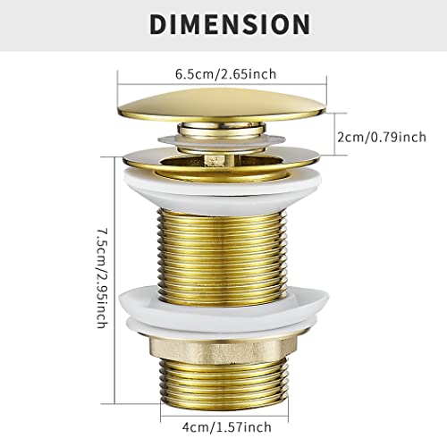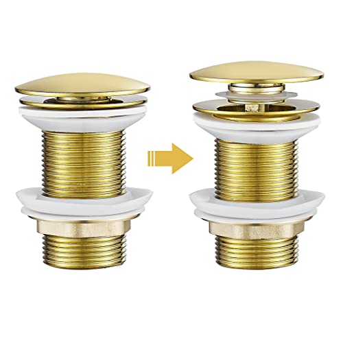 WOMAO Lavello per Lavabo Pop-Up Oro, Ottone Piletta Click Clack Nera Opaca senza Troppo Pieno,Piletta Bidet con Cestello Filtrante Universale