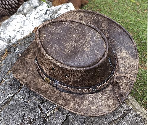 Wombat The Wilds Crushable Brown Cow Hide cuoio invecchiato cappello sottogola Mens Womens