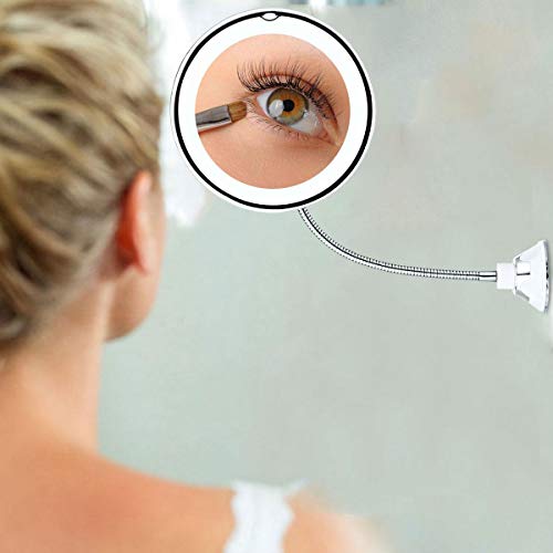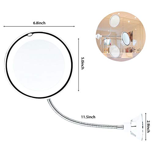 Womdee Specchio Ingranditore, LED Specchio Trucco, Rotazione di 360 Gradi con Collo di Cigno Regolabile, Specchio Bagno con aspirazione, Cordless Portatile Specchio da Parete