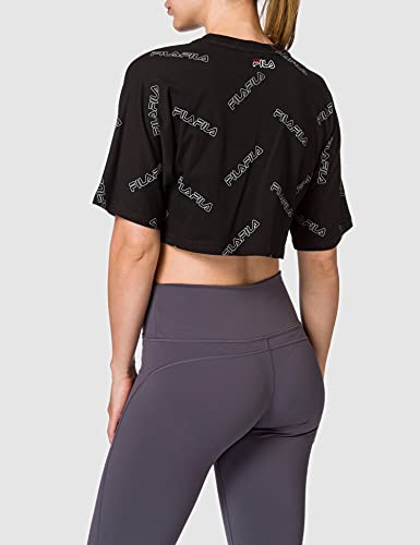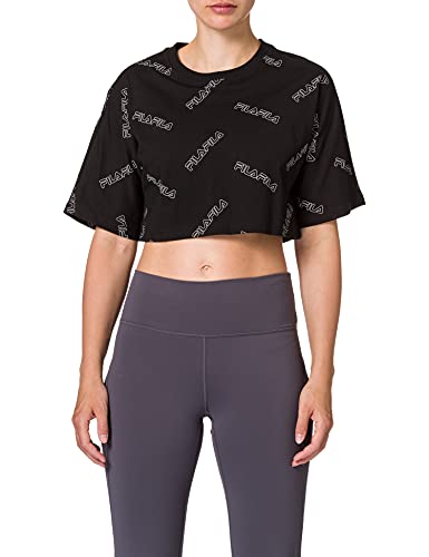 Fila Women JAMILIA AOP Wide Cropped Tee T-Shirt, Nero, L Donna