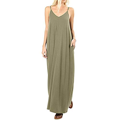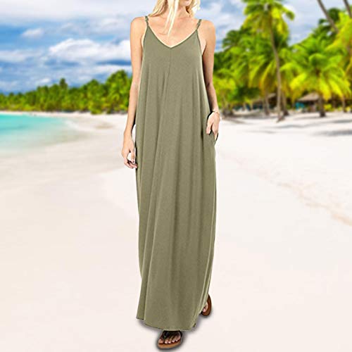 ERZU Women's Summer Casual Sleeveless V Neck Strappy Split Loose Dress Beach,Casual Dresses Swing Cover Up Elastic Sundress with Pockets,Pockets Dress Short Sleeve