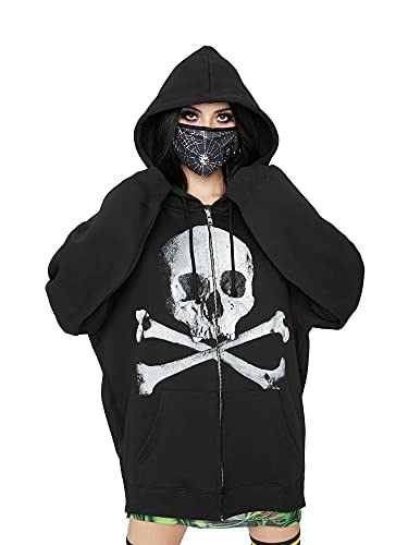 Womens Y2k Zip Up Hoodies Skull/Skeleton Print Oversized Pullovers Sweatshirt Fall Clothes Jacket Tracksuit with Pockets (G#Black, Large)