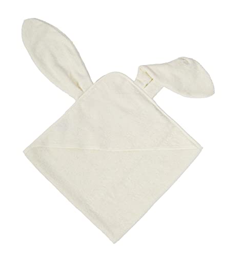 Wometo OekoTEX - Asciugamano con cappuccio in cotone con orecchie da coniglio XXL, 75 x 75 cm, colore: bianco crema