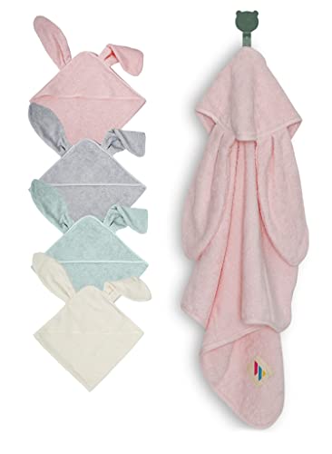 Wometo OekoTEX - Asciugamano con cappuccio in cotone con orecchie da coniglio XXL, 75 x 75 cm, colore: rosa, per ragazze, ragazzi e bambini