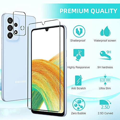Wonantorna Pellicola Protettiva Compatibile con Samsung Galaxy A33 5G Vetro Temperato, 3X Pellicola Vetro e 2X Pellicola Fotocamera, Alta Definizione, No Bolle, Anti-Impronte, Anti Graffio
