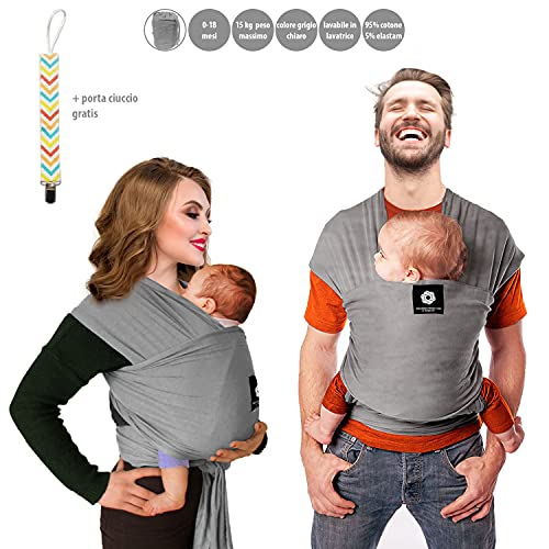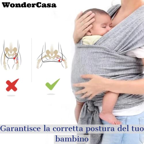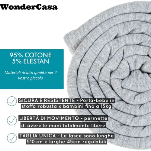 Wonder Casa - Fascia Porta Bebé in Cotone Elasticizzato per Neonati e Bambini da 0 a 18 Mesi Fino a 15Kg e Portaciuccio in Regalo