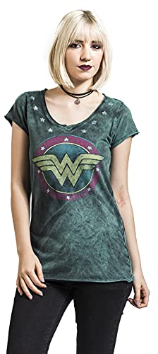 Wonder Woman Vintage Logo Donna T-Shirt Verde XL 100% Cotone Regular