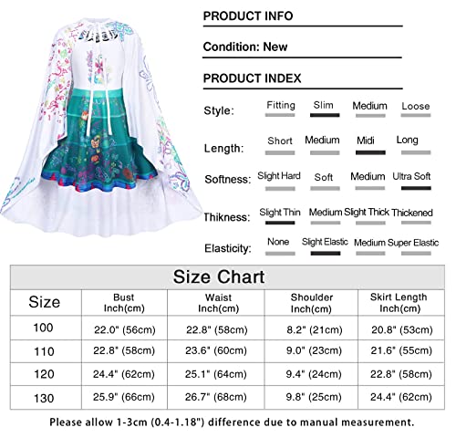 WonderBabe Mirabel/Isabella/Pepa/Dolores Costume da Principessa per Halloween, compleanno, Fancy Party Magic Family Cosplay Outfit, A02108-bianco, 2-3 Anni
