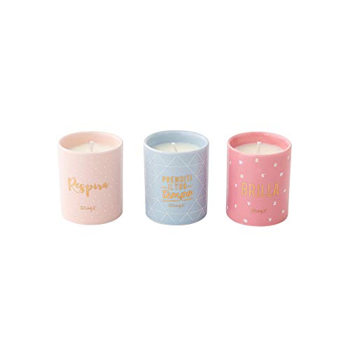Mr. Wonderful Set di 3 Candele Respira, prenditi Il Tuo Tempo e. brilla (IT), Multicolore, 5x6x7 cm, 3 unità
