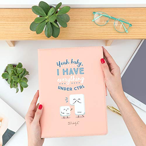 Custodia a libro per tablet, design originale di Mr Wonderful con la frase "Sì piccola, ho tutto sotto ctrl" e tasti Invio e Controllo